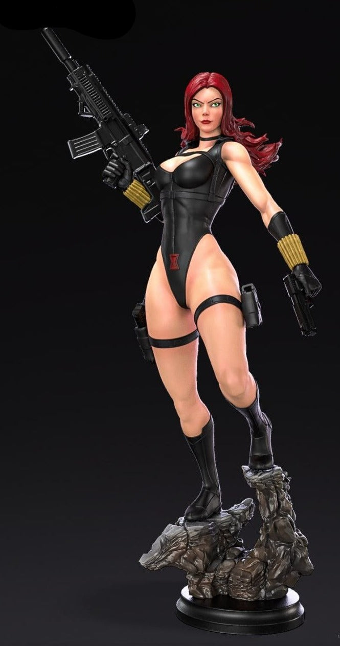 Black widow 3D Print STL files and 3D Models – The models are optimized for all types of 3D Printing , SLA / SLS / FDM / DLP Types of 3D printing .