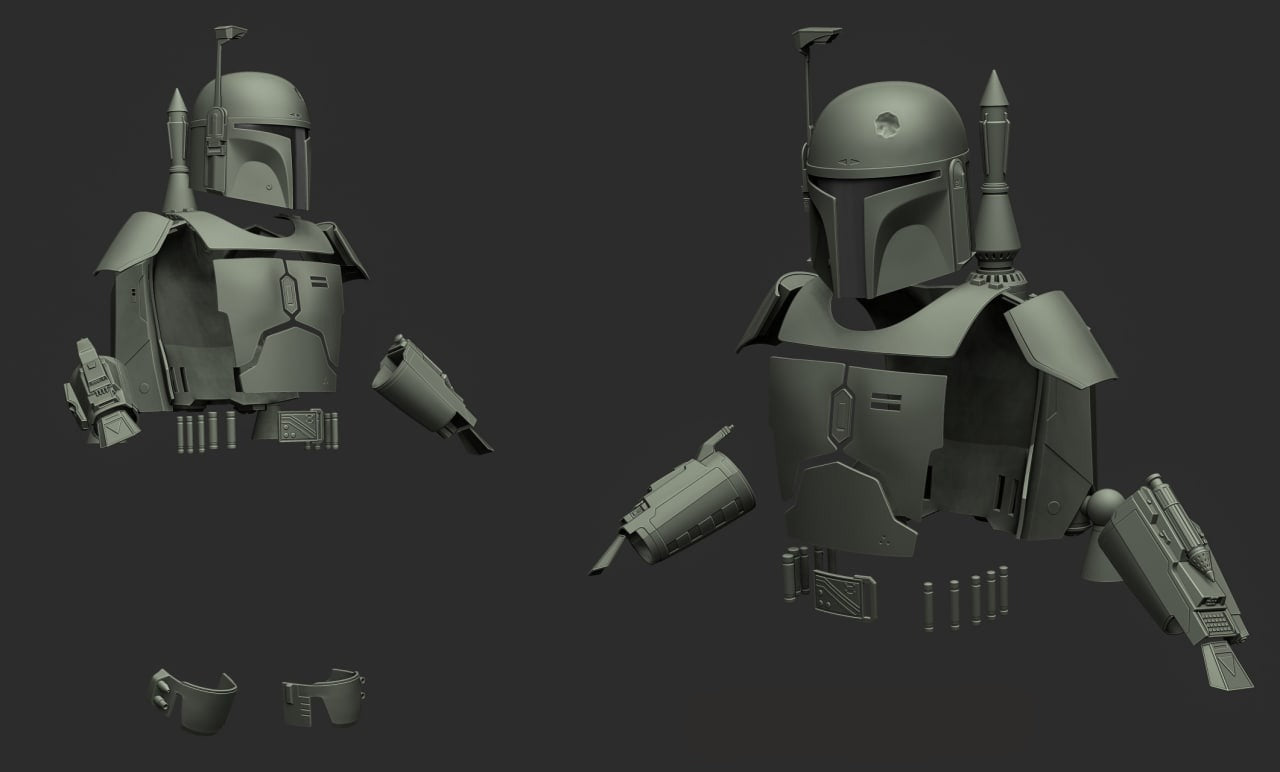 Boba fett cosplay Suit 3D Printable stl files and 3D Models – The models are optimized for all types of 3D Printing , SLA / SLS / FDM / DLP Types of 3D printing .
