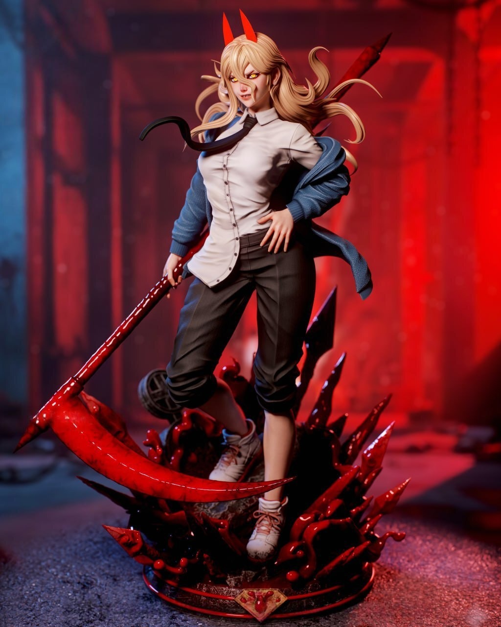 Chainsaw man – power 3D printing stl files and 3D Models – The models are optimized for all types of 3D Printing , SLA / SLS / FDM / DLP Types of 3D printing. This model is direct from 3d print maker club archives .