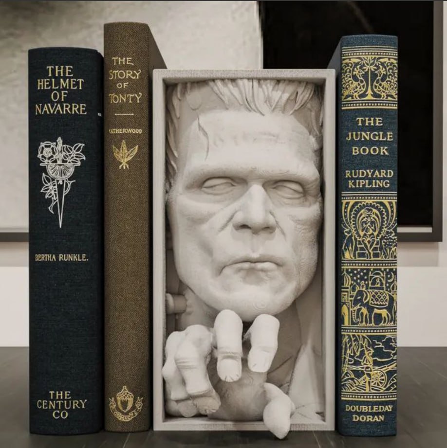 Frankenstein 3D Book nook 3D printing stl files and 3D Models – The models are optimized for all types of 3D Printing , SLA / SLS / FDM / DLP Types of 3D printing. This model is direct from 3d print maker club Universe.