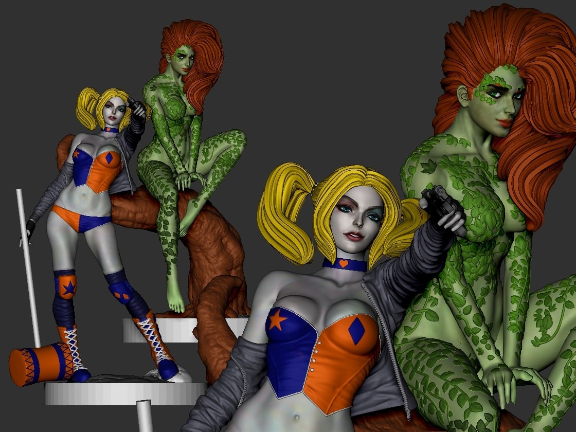 Harley & Ivy 3D Print stl files and 3D Models – The models are optimized for all types of 3D Printing , SLA / SLS / FDM / DLP Types of 3D printing .