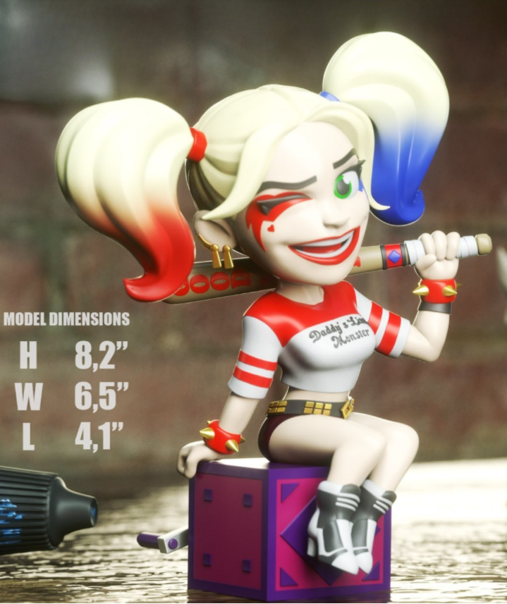 Harley Quinn chibi STL files for 3d printing and 3D Models – The models are optimized for all types of 3D Printing , SLA / SLS / FDM / DLP Types of 3D printing .