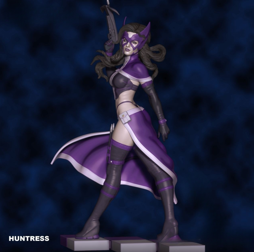 Huntress DC Comics 3D Print STL files and 3D Models – The models are optimized for all types of 3D Printing , SLA / SLS / FDM / DLP Types of 3D printing .