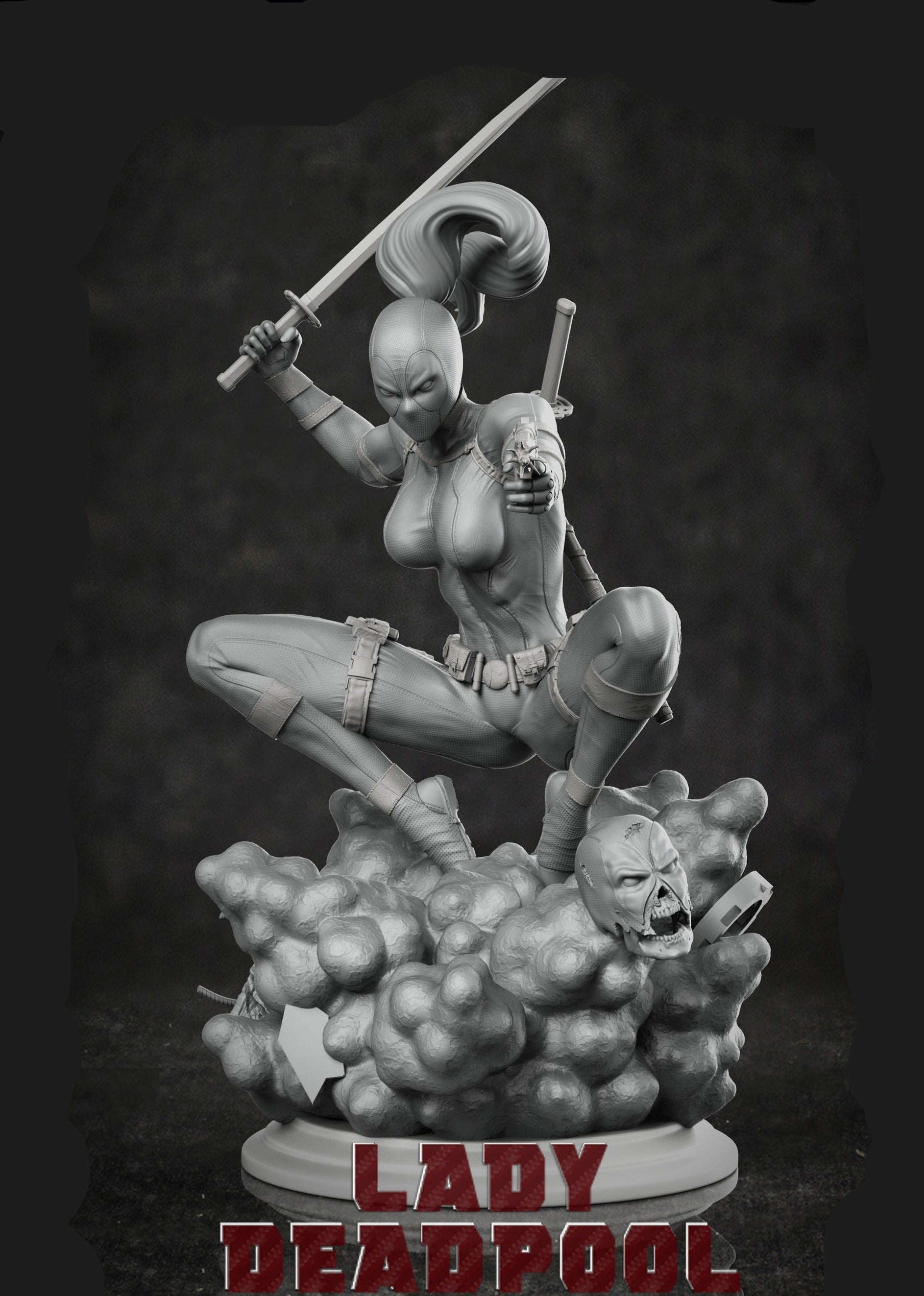 Lady deadpool 3D Printable stl files and 3D Models . The models are optimized for all types of 3D Printing , SLA / SLS / FDM / DLP Types of 3D printing .