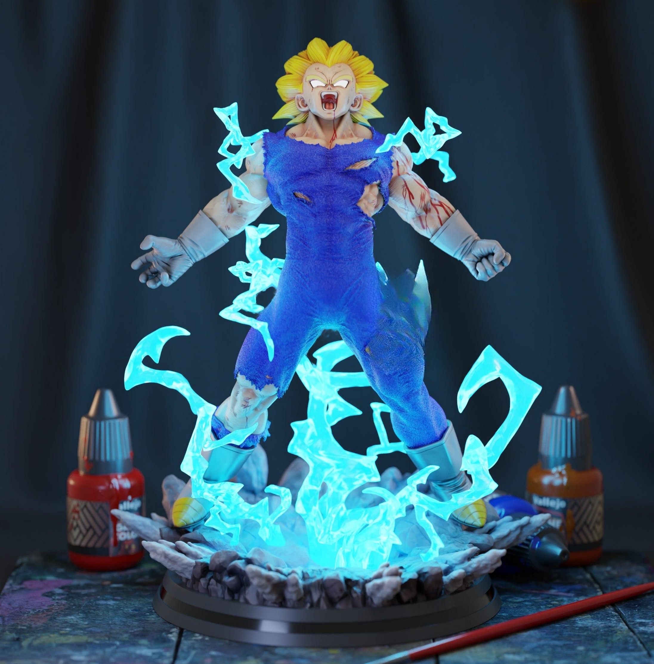 Majin vegeta 3D Print STL files and 3D Printable Models – The models are optimized for all types of 3D Printing , SLA / SLS / FDM / DLP Types of 3D printing . The models are High-poly 3D Model suited to 3D Print in any scale you want .