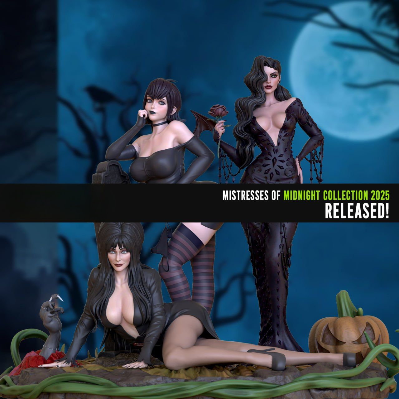 Mistress of Midnight diorama 3D printing stl files and 3D Models – The models are optimized for all types of 3D Printing , SLA / SLS / FDM / DLP Types of 3D printing. This model is direct from 3d print maker club archives .
