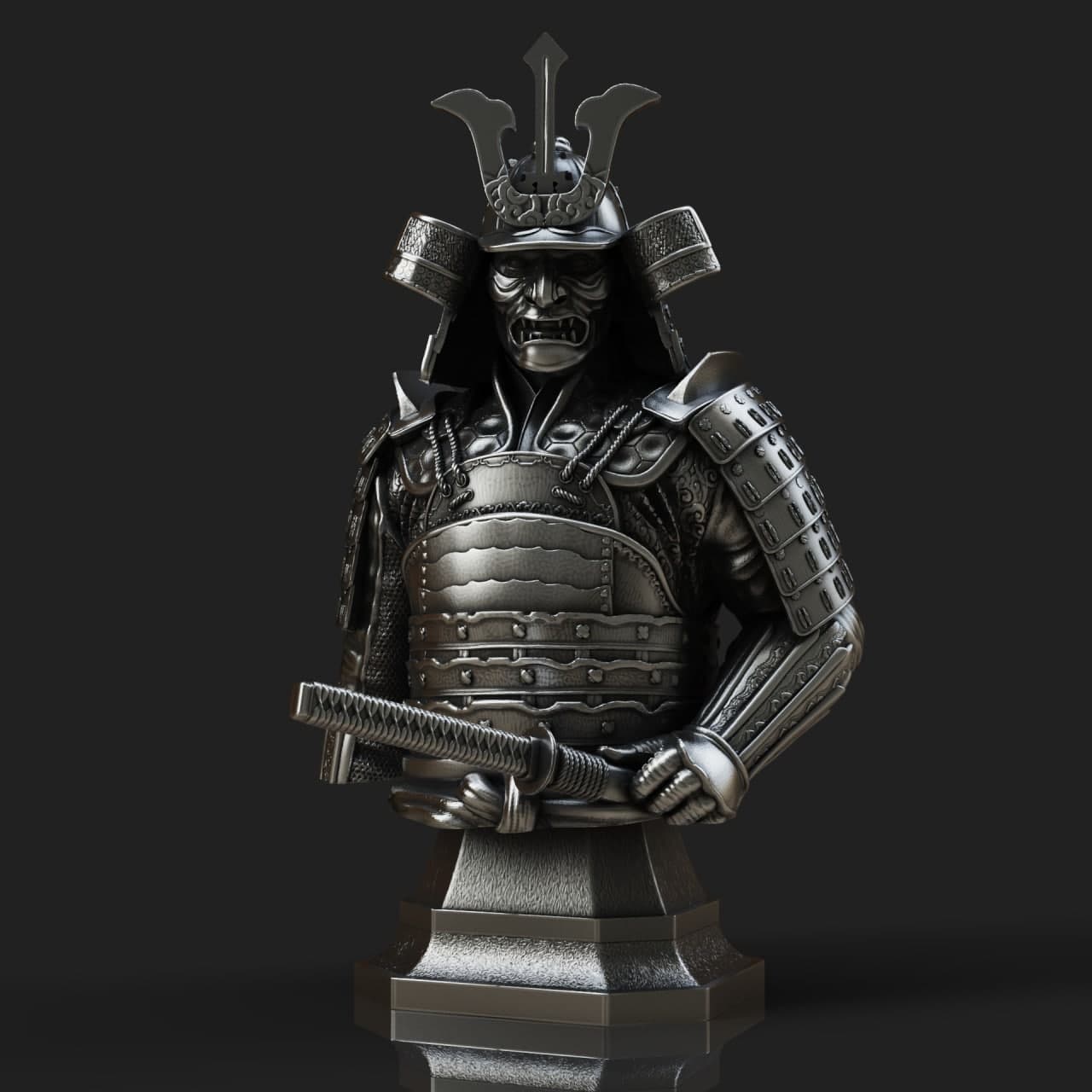 Samurai bust Pre-supported 3D Print stl files and 3D Models – The models are optimized for all types of 3D Printing , SLA / SLS / FDM / DLP Types of 3D printing .