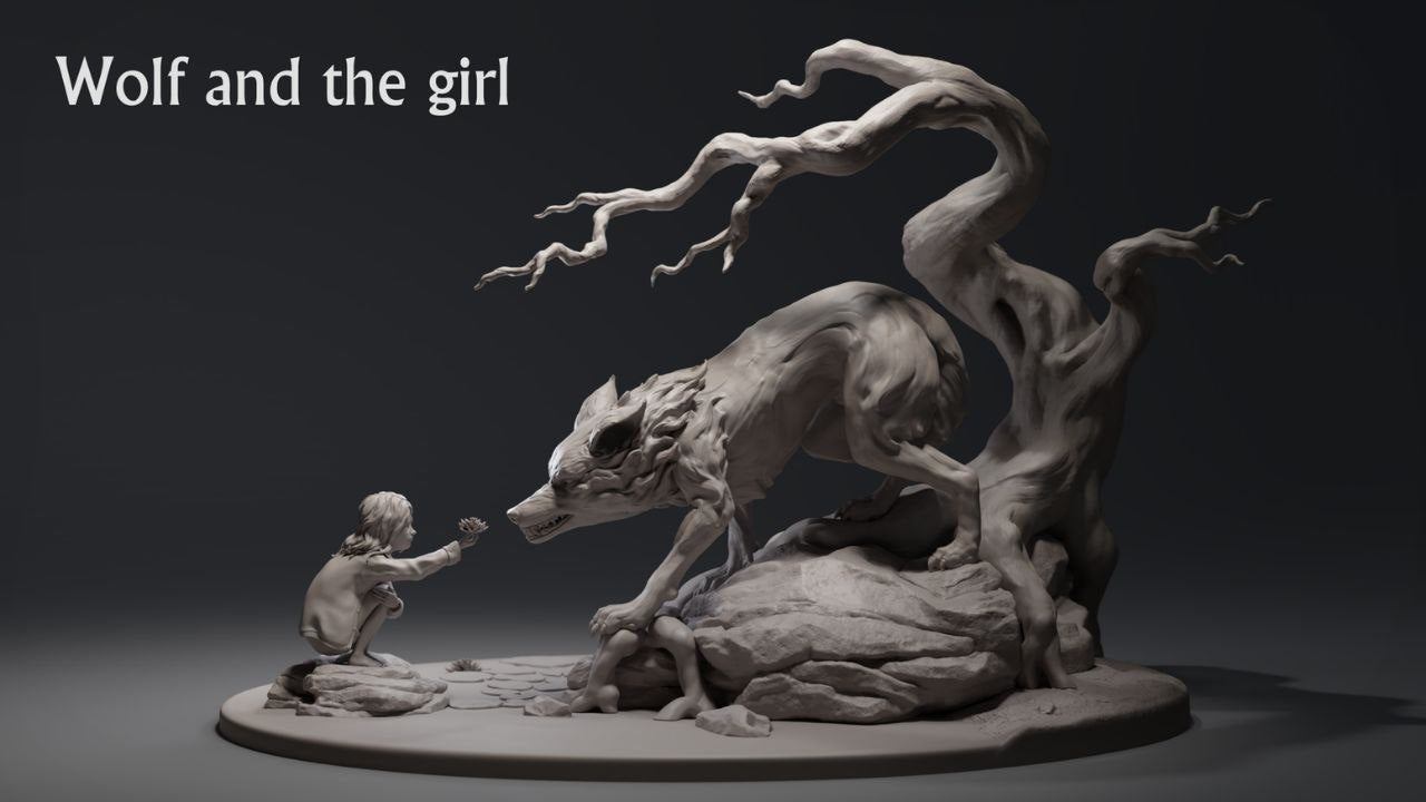 Wolf and the girl 3D Print stl files and 3D Models – The models are optimized for all types of 3D Printing , SLA / SLS / FDM / DLP Types of 3D printing .